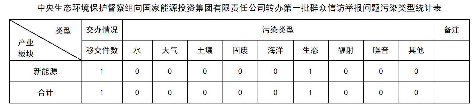 11月20日,中央第五生態(tài)環(huán)境保護督察組向國家能源投資集團有限責任公司移交第一批群眾信訪舉報件1件,其中來電舉報1件。