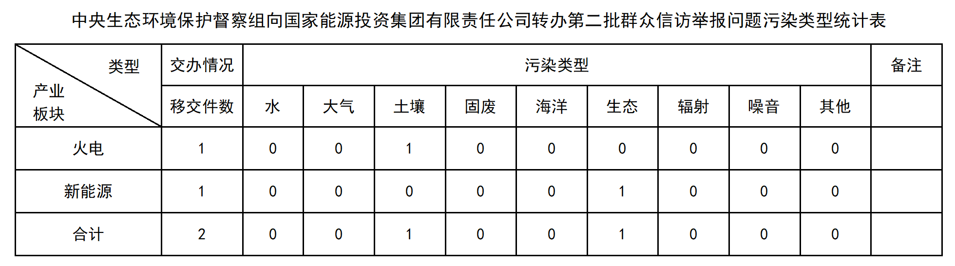 截至當日,國家能源投資集團有限責任公司已累計收到中央第五生態(tài)環(huán)境保護督察組交辦的信訪舉報件3件。涉及生態(tài)環(huán)境問題3件,其中土壤1件、生態(tài)2件。所有舉報件均已及時轉交相關企業(yè)處理。