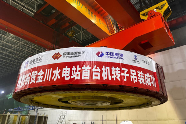圖為金川水電站4號機組轉(zhuǎn)子吊裝現(xiàn)場