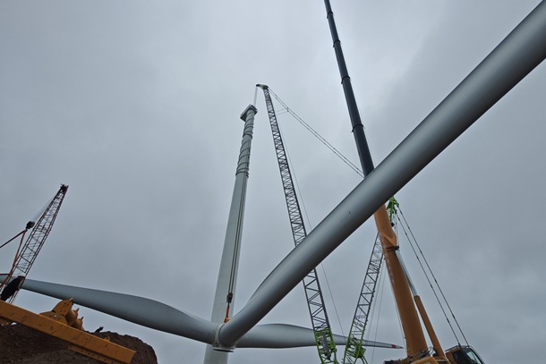經(jīng)過(guò)吊裝人員十余分鐘的屏息奮戰(zhàn),高空驟然傳來(lái)一聲宛若命運(yùn)之錘敲定的“當(dāng)啷”巨響!那聲音如此有力,瞬間擊碎了風(fēng)雨的帷幕,也震落了地面每一顆懸著的心。王超緊握的拳頭猛地松開(kāi),一股滾燙的熱流伴隨著長(zhǎng)久壓抑的呼吸,重重地從胸腔深處沖出。他抬起頭,雨水混合著汗水滑落。視線穿過(guò)迷蒙的雨幕,投向塔頂——機(jī)艙與葉輪在陰郁的天色下已渾然一體,宛如鋼鐵澆筑的當(dāng)歸,深深植根于這片藥鄉(xiāng)的脊梁之上。